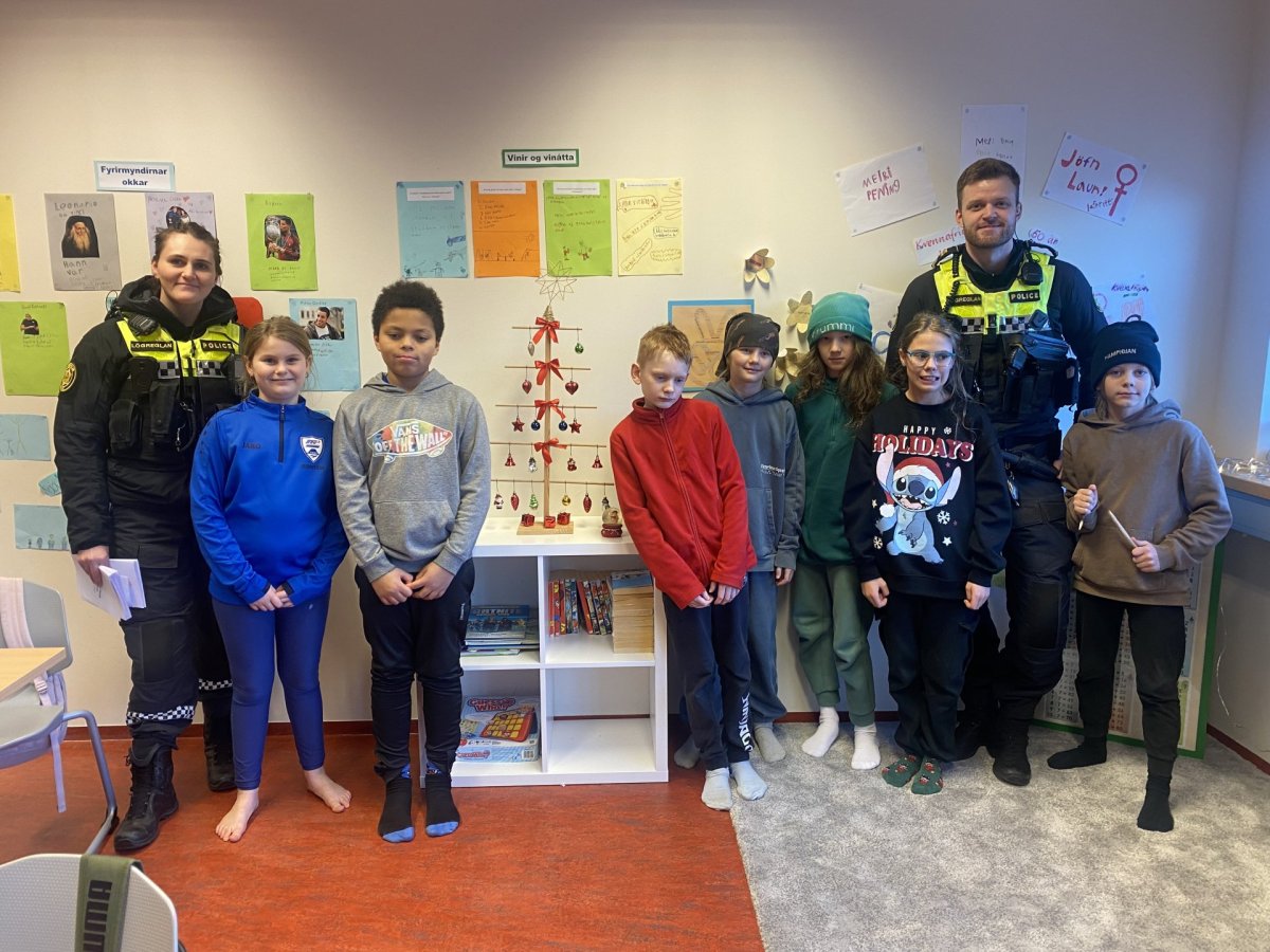 Á þriðjudaginn kom lögreglan í heimsókn til okkar í 5. bekk og lagði fyrir umferðargetraun. Dregið verður úr réttum lausnum og mun vinningshafi fá heimsókn á aðfangadag og fá afhentan vinninginn.