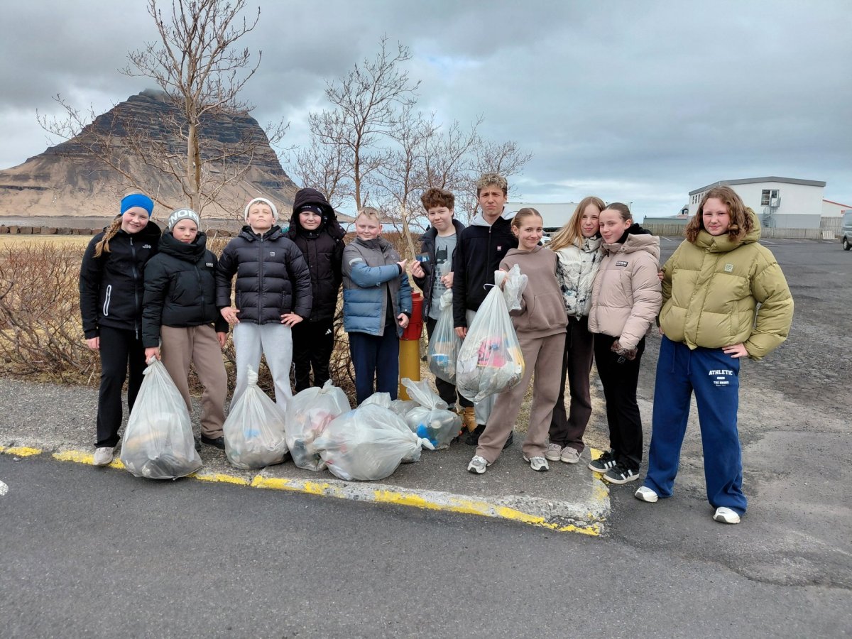 Af því tilefni fóru nokkrir bekkir í að týna í rusl í okkar nærumhverfi.