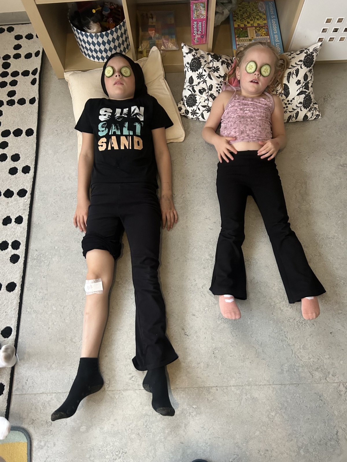 Hér er hluti af nemendum í Snyrtistofuvali á yngsta stigi í slökun, dekur og hárgreiðslu.Í dag byrjuðum við á slökun, settum gúrku á augun og hlustuðum á hugleiðslu. Enduðum á hárgreiðslustofu og að lita. Fleiri myndir inni á myndasíðu.